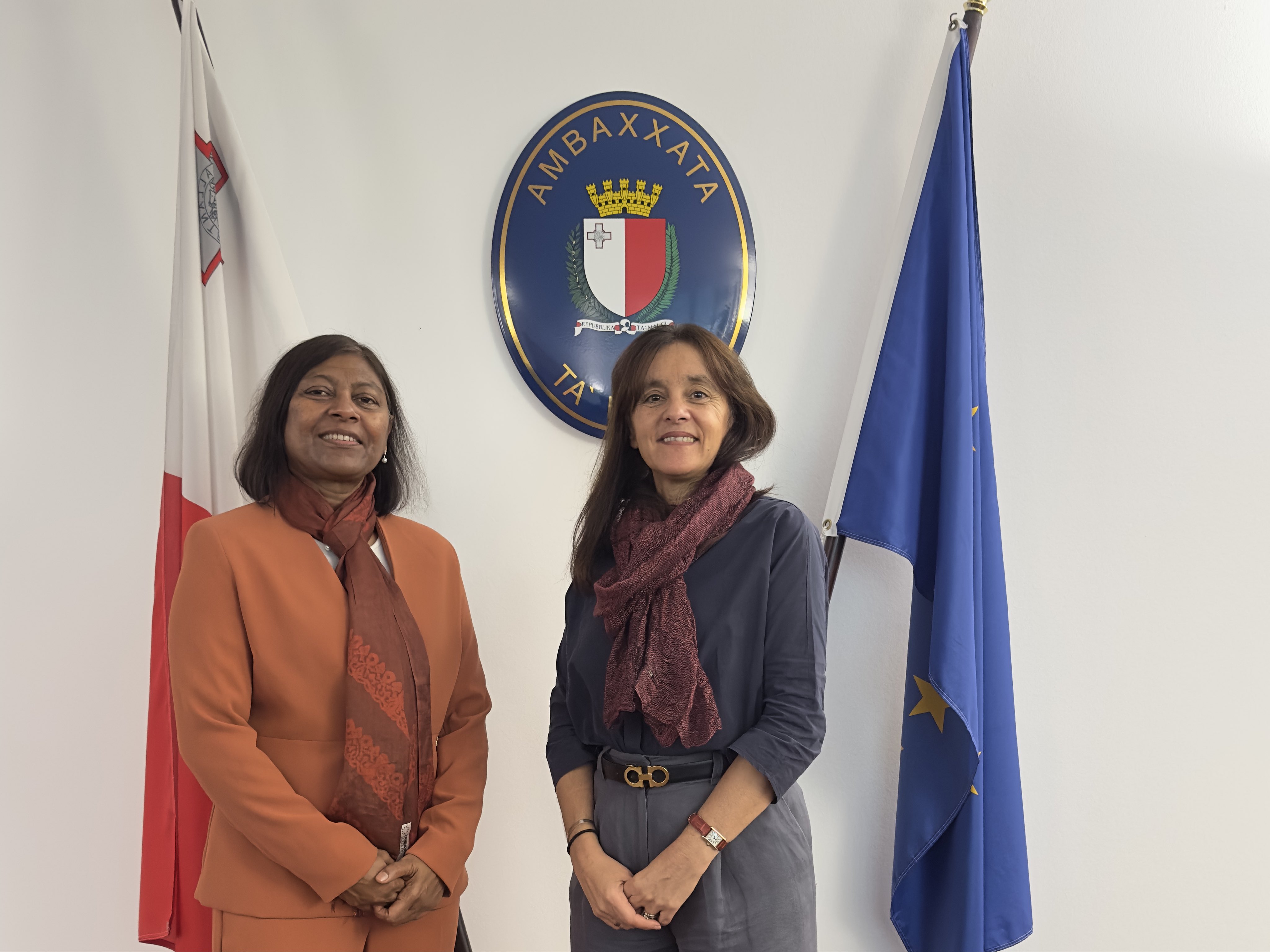 Ambassador Shaan met with the Ambassador of Malta, Marlene Bonnici, at the Embassy of Malta.