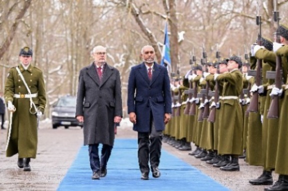 The Estonian military played the national anthems of both countries during the event. Afterwards, President Dr Muizzu and President Dr Karis inspected the Guard of Honour.