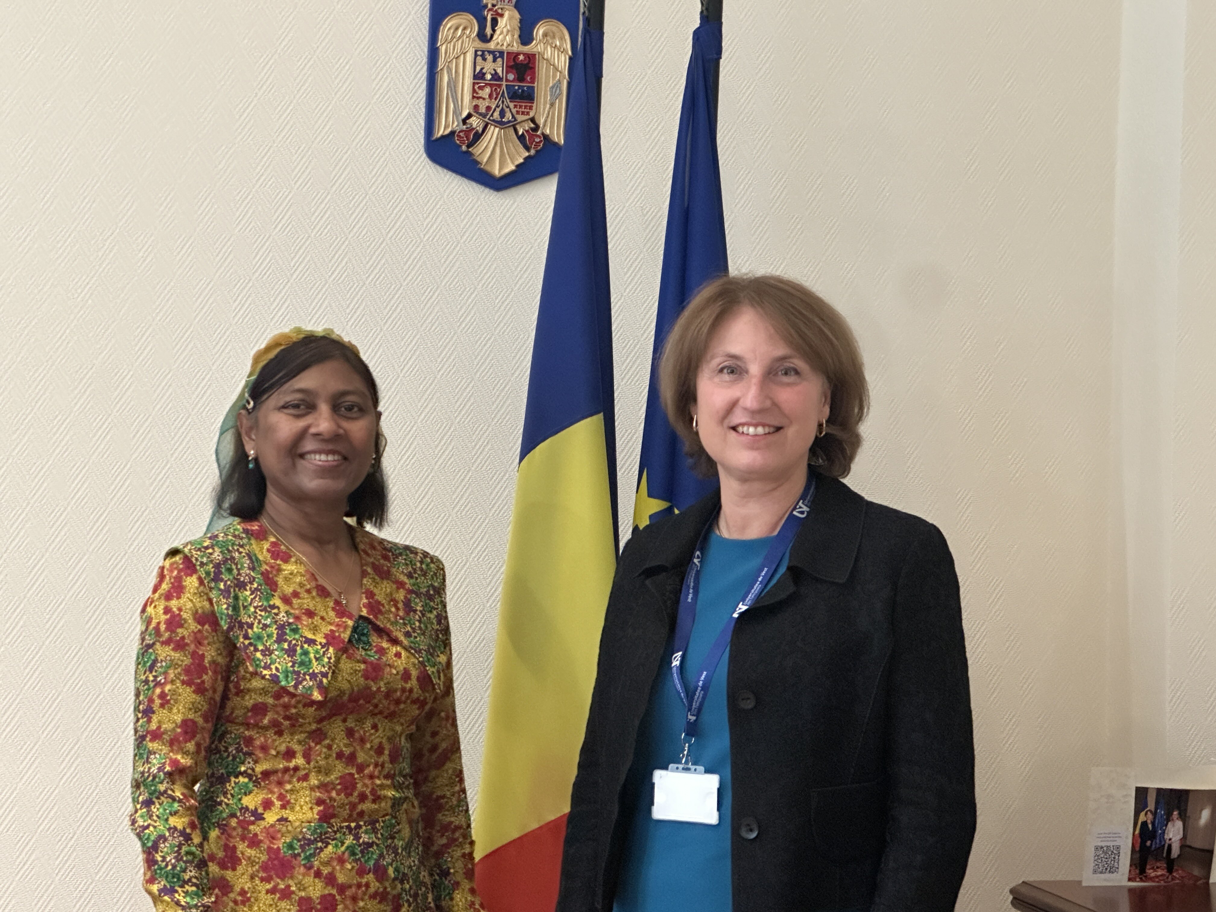Ambassador Shaan met with the Ambassador of Romania, Adriana Stanescu, at the Embassy of Romania.