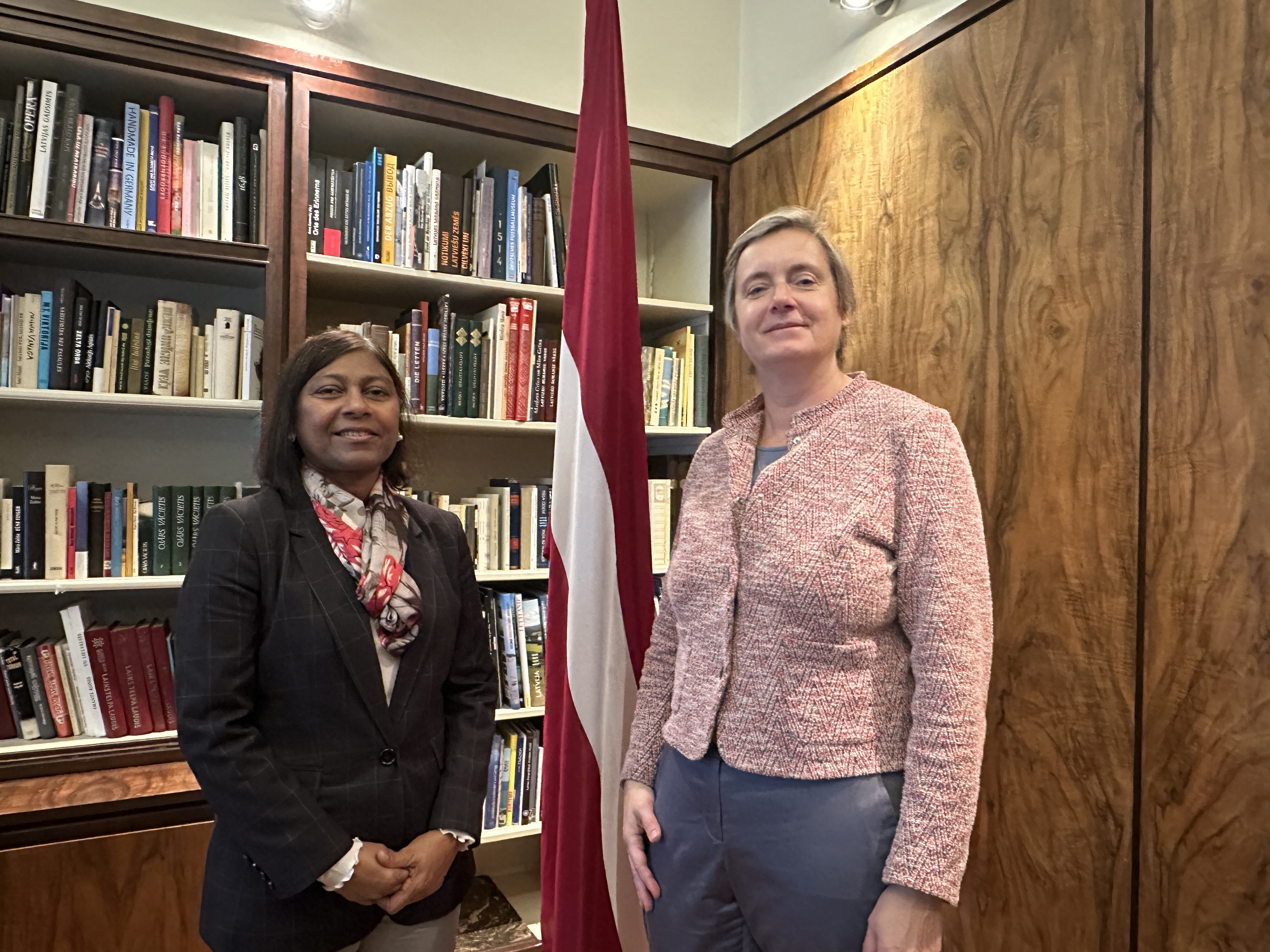 Ambassador Shaan met with Ambassador of Latvia, Alda Vanaga, at the Embassy of Latvia.